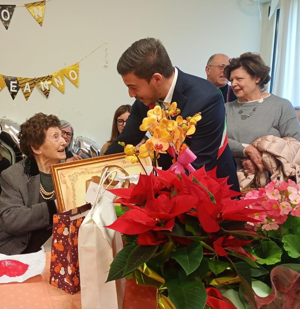 La signora Ada molto commossa ha ricevuto diversi doni tra i quali l’ingresso al Club over100 della Fondazione OIC Onlus e una prestigiosa pergamena da parte dell’Amministrazione Comunale.