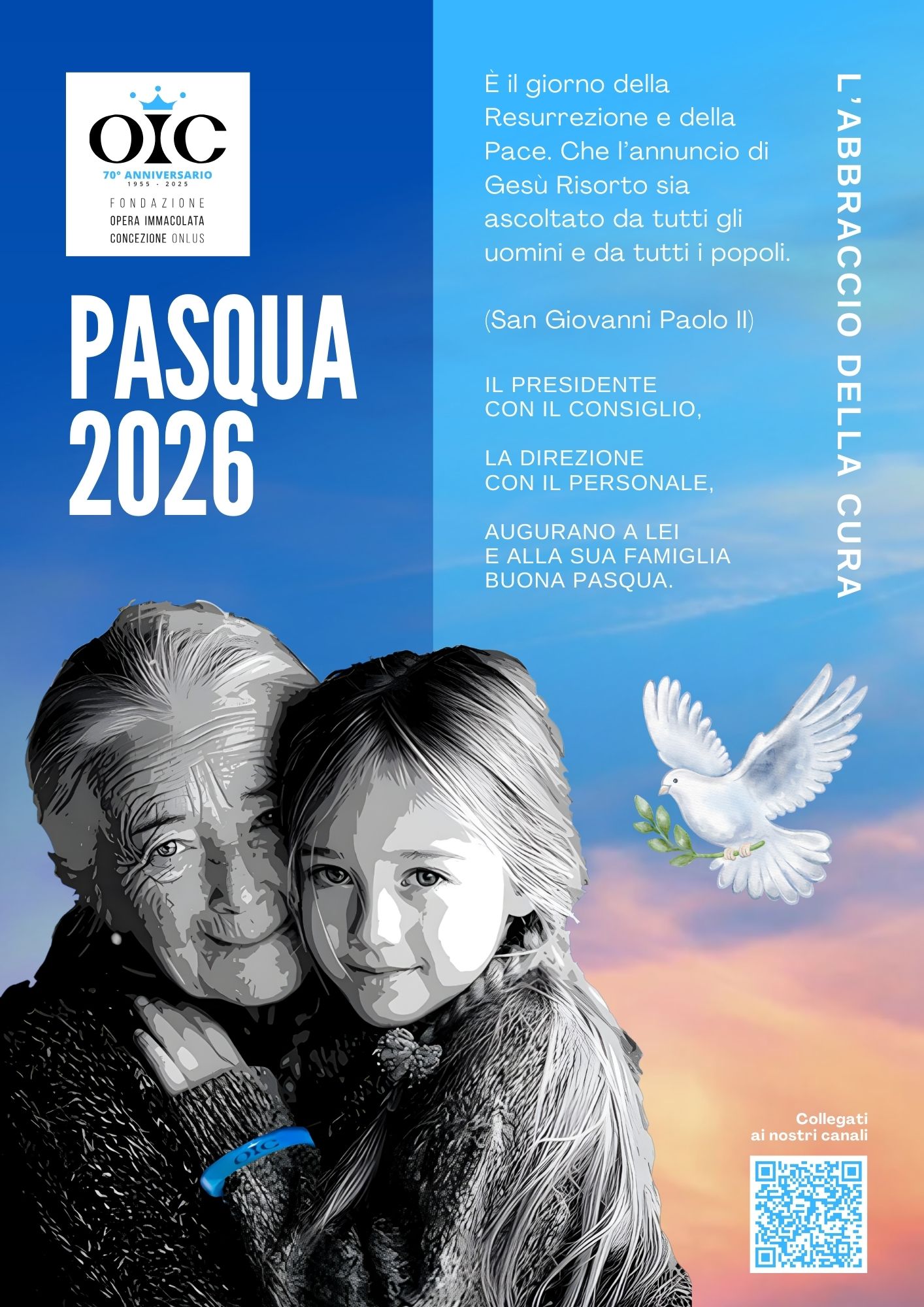 La direzione, il coordinamento e il personale tutto della Residenza G. Botton di Carmignano di Brenta – Fondazione OIC Onlus – augurano a tutti una Santa Pasqua, in particolare a tutti coloro che arricchiscono la nostra comunità con la loro presenza. Auguriamo a tutti di poter vivere intensamente la propria realtà con la Speranza della Resurrezione.