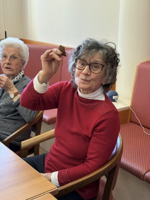 Il momento ha rallegrato la mattinata. Ospiti contenti anche di assaggiare il cioccolato e di stare insieme, come sempre, a far merenda raccontandosi le loro storie.